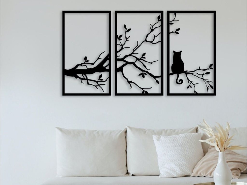 - Letisztult & Modern Design: Az ágat és a macskát ábrázoló, letisztult vonalvezetés tökéletesen illeszkedik a modern, minimalista vagy skandináv stílusú otthonokba.