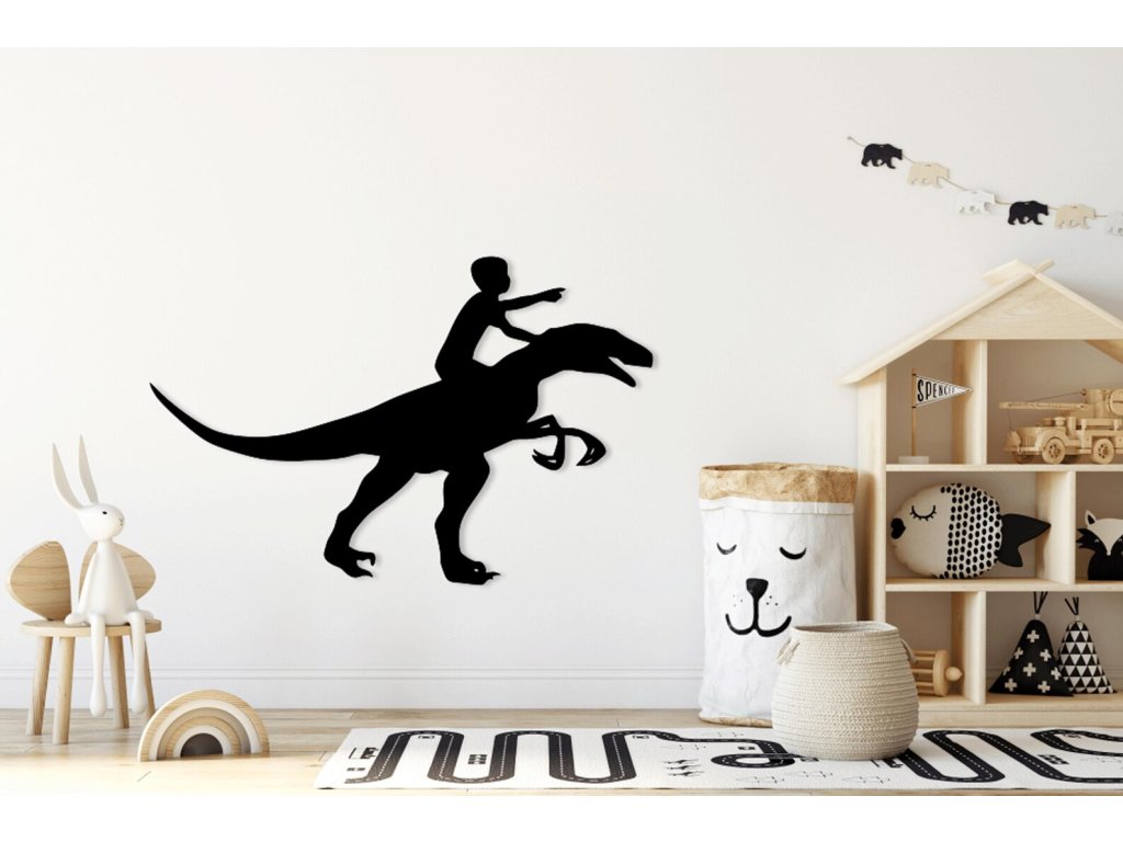 Ez a vidám, mégis látványos fali dekoráció minden kisfiú álmát megtestesíti: egy saját dinoszauruszt, amit ő irányít! A lézervágott fa sziluett modern, letisztult formában ábrázolja a kalandot és a fantáziát – tökéletes kiegészítő gyerekszobába.