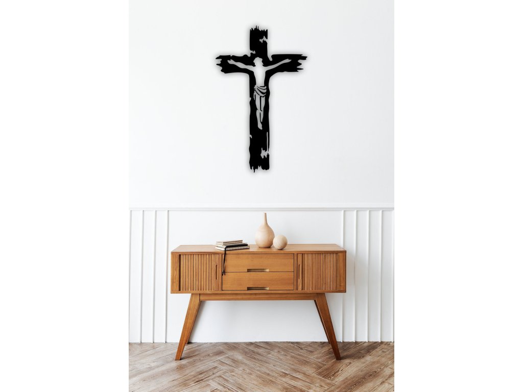 Elegáns Fekete Kereszt – tökéletes falidísz modern otthonokba. Stílusos vallási dekoráció, fúrás nélkül. Rendeld meg ma!