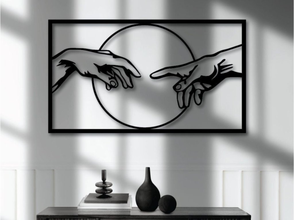 - Letisztult & Modern Design: Az Isteni Érintés Fali Dekoráció elegáns vonalai tökéletesen illeszkednek a modern, minimalista vagy skandináv stílusú otthonokba.