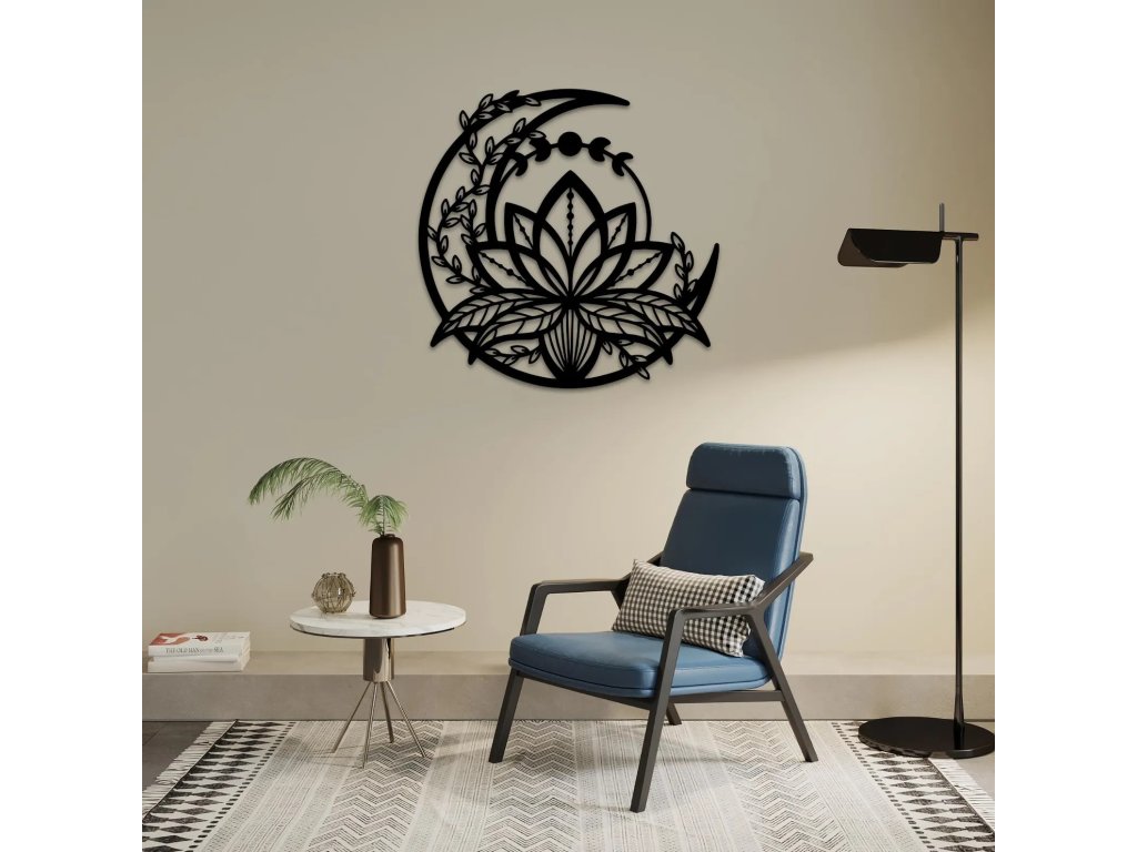 A Lótusz és Hold fali dekoráció a belső béke, a megújulás és a természet ritmusa közötti harmóniát testesíti meg.