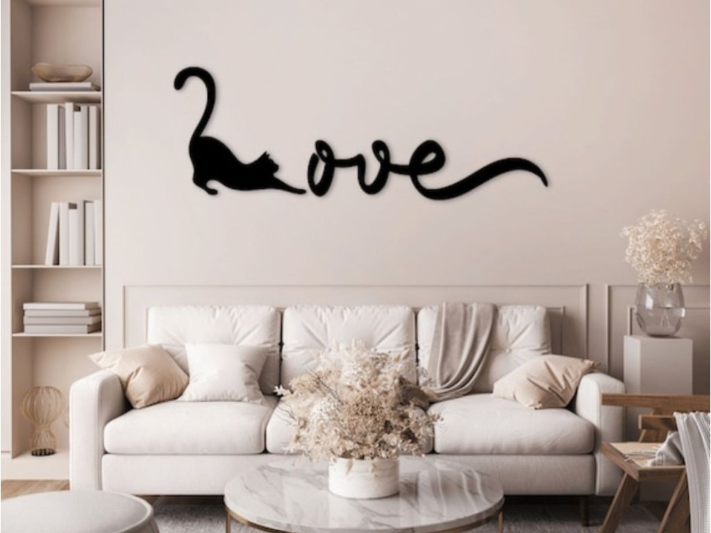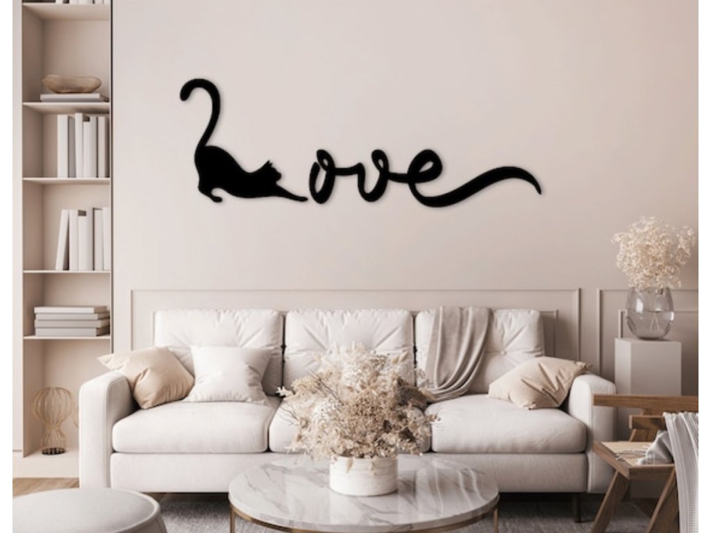 Macskás Love Fali Dekor lenyűgöző kinézetével felpezsdíti nappalid. Könnyű rögzítés, modern stílus. Tedd egyedivé otthonodat.