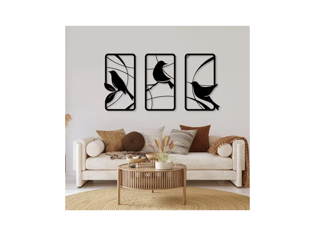 Madár Triptych: Lenyűgöző, modern dekoráció nappalidba. Könnyű felszerelés, fúrás nélkül. Tedd természetközeli hangulatúvá otthonod.