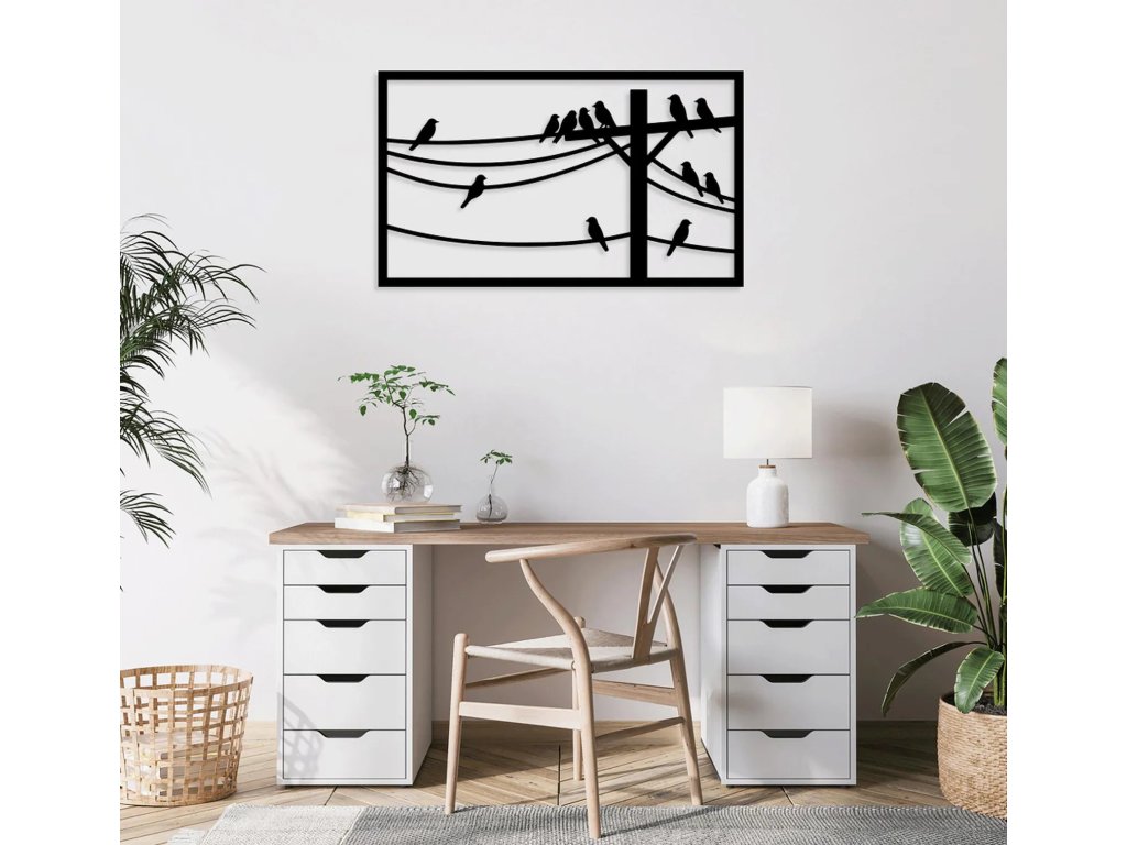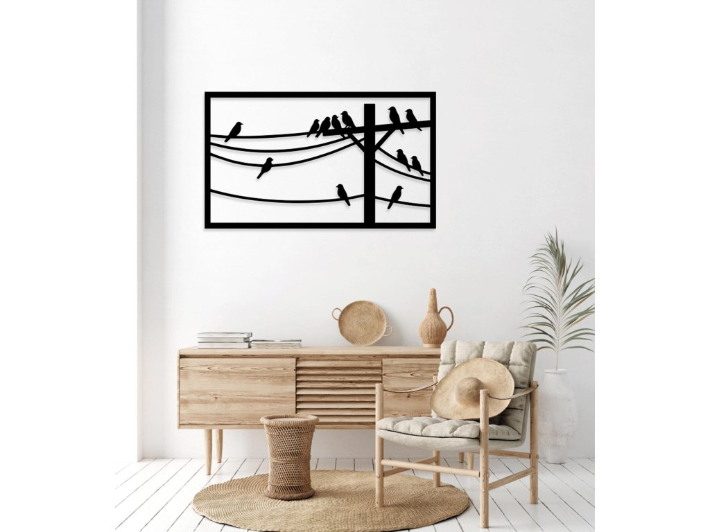 Madarak a vezetéken - fa falidekor