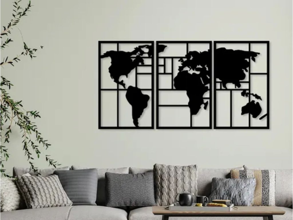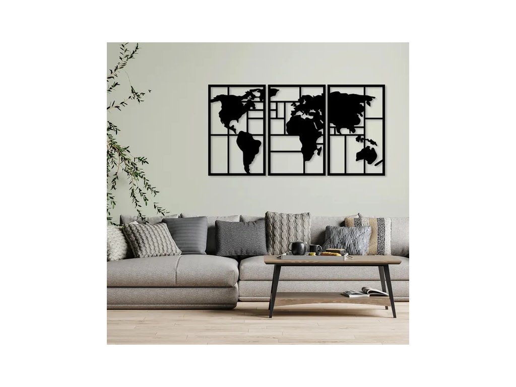 - Letisztult & Modern Design: A letisztult fekete vonalvezetés és a térkép stilizált megjelenése tökéletesen illeszkedik a modern, minimalista vagy skandináv stílusú otthonokba.